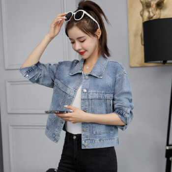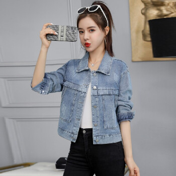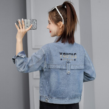 阿顿资短外套女学生牛仔春秋新夹克款韩版宽松时尚洋气短款简约英文刺绣上衣潮 8752 图片色 M |