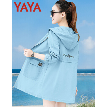 鸭鸭服饰yaya防晒衣女新款女装夏季上衣女韩版百搭连帽短外套女薄款洋气薄款外套女ins潮 天蓝色 请选择正确尺码 |