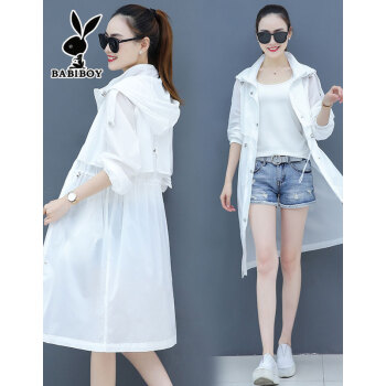 BABIBOY 防晒衣女中长款夏季新款女士防晒衫百搭宽松防紫外线透气薄款长款外套女 白色 M |