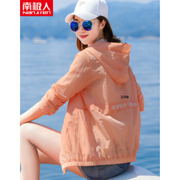 南极人 防晒衣女长袖连帽夏季新款防晒服洋气刺绣宽松显瘦薄外套短款空调防晒衫潮 N1-GT102-3210-橙色 L |