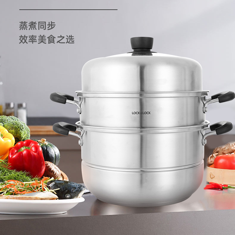 28cm加厚锅底炖锅304不锈钢汤锅高盖蒸锅三层蒸锅【304不锈钢/不锈钢】 |