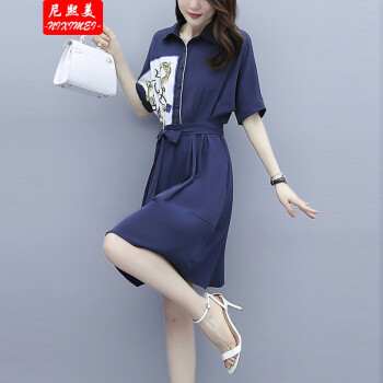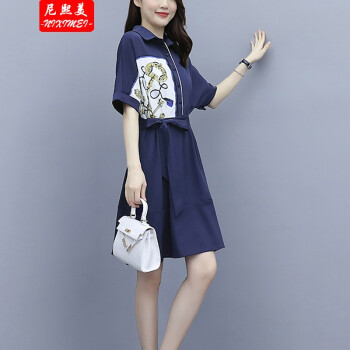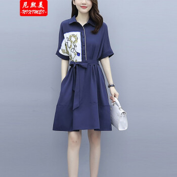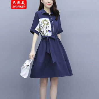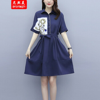 尼熙美 大码女装胖mm夏装新款气质胖妹妹宽松显瘦遮肚子加肥加大时尚拼接衬衫遮肉连衣裙 蓝色 2XL 建议135-150斤 |
