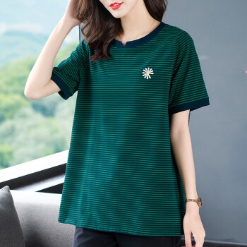 木棉林胖妹妹mm宽松t恤女韩版加大码女装新款夏装200斤显瘦条纹中长款洋气上衣L202733 蓝底绿条 3XL建议160-180斤 |
