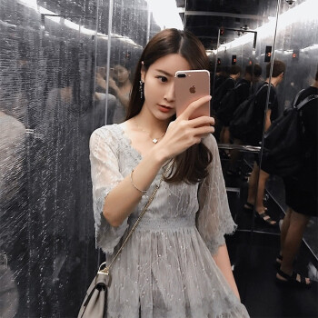 可馨怡 胖妹妹夏装胖人女装新款显瘦遮肚子连衣裙大码女装胖mm雪纺仙女裙200斤 灰色 XXXXL(建议150-175斤左右) |