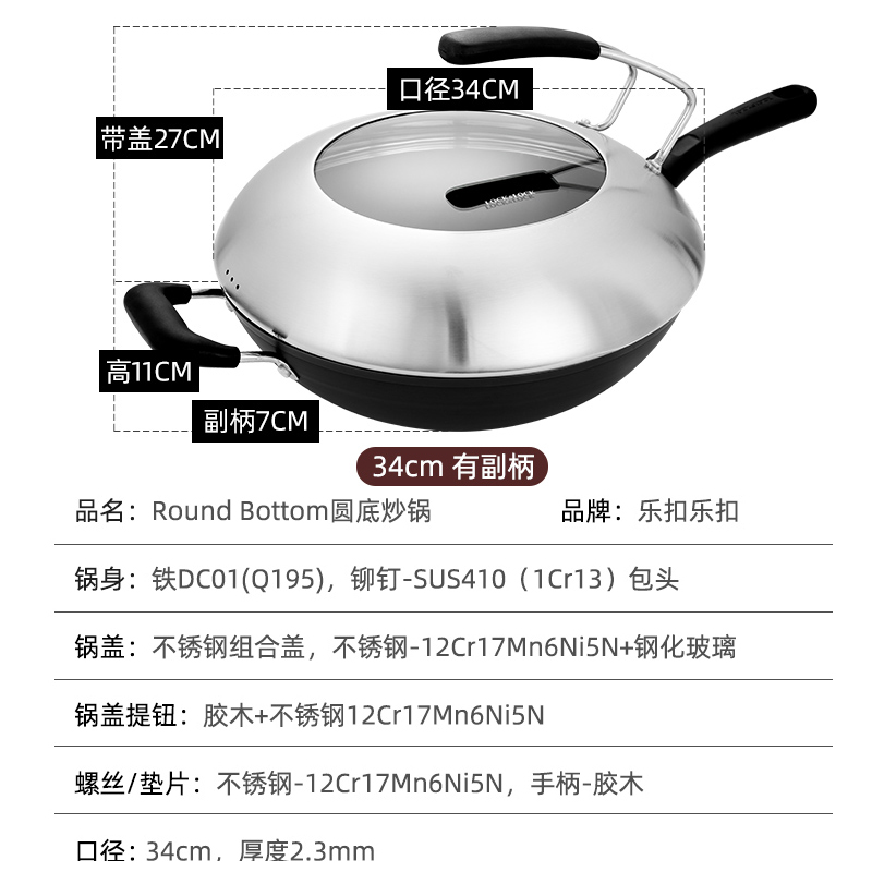 家用铁锅炒锅煤气灶无涂层铁锅炒菜锅34CM【铁/34CM】 |
