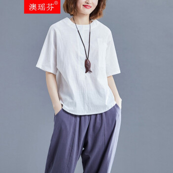 澳瑶芬 胖妹妹夏装加肥加大码女装胖mm新款女宽松百搭短袖上衣女微胖复古气质短袖衬衫女 白色 3xl(建议185-200斤左右) |