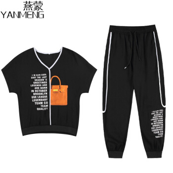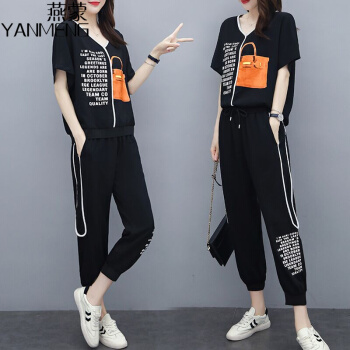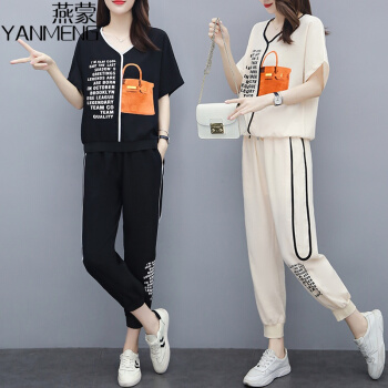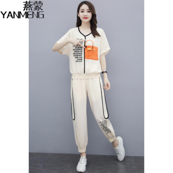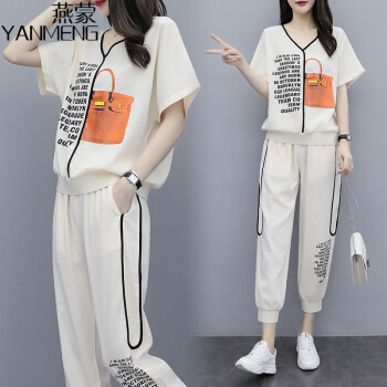 燕蒙 大码女装短袖t恤套装女夏季新款加肥加大宽松显瘦时尚胖mm200斤休闲裤运动两件套M21 杏色 2XL【建议135-155斤】 |