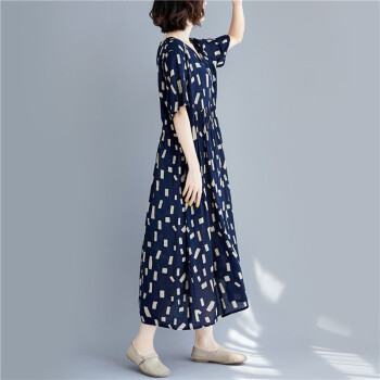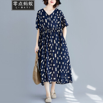 零点蚂蚁新款加肥加大码女装胖mm夏装洋气休闲时尚韩版v领收腰遮肉宽松连衣裙胖人女装胖妹妹裙子 图片色 均码【110-200斤】 |