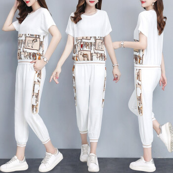 睡妍 大码女装套装女夏夏季新品韩版时尚套装减龄洋气宽松显瘦九分裤短袖休闲运动套装两件套女夏 黑色 L(98-110左右) |