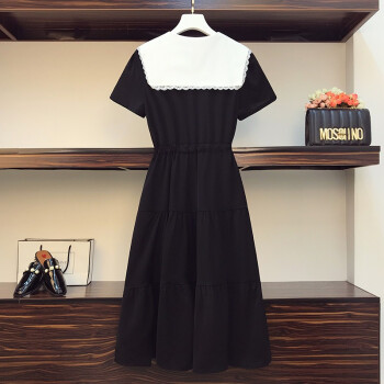 妙柔琪 胖妹妹夏装新款韩版加肥加大码女装微胖mm拼接宽松遮肚子显瘦连衣裙200斤胖人女装 黑色 XXXL(建议150-175斤左右) |