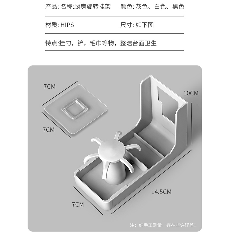 免打孔厨房锅铲挂钩3个【HIPS/黑色】 |