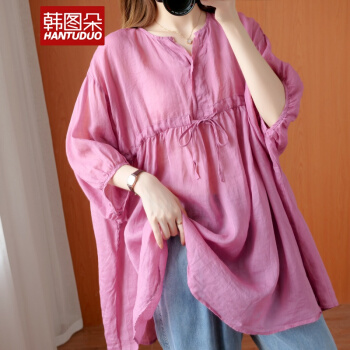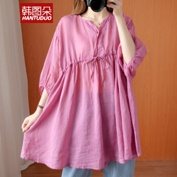韩图朵胖妹妹mm大码衬衫女夏装新款棉麻衬衣短袖宽松上衣3068 墨绿色 大码均码 |