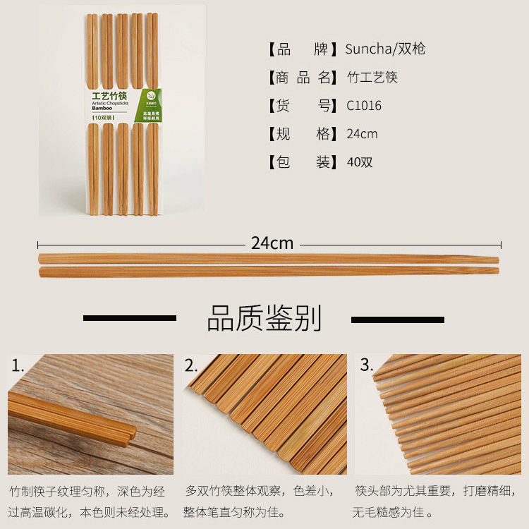 家用竹筷无漆无蜡40双装【竹/竹原色】 |
