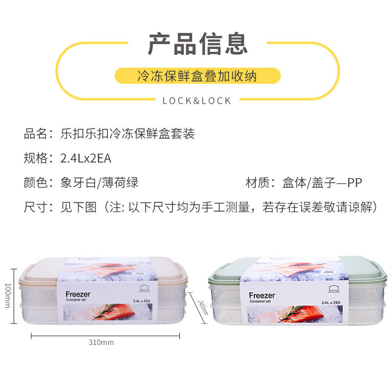 (买就送乐扣原装保鲜膜)2400ML*2 乐扣乐扣密封保鲜盒冰箱冷冻分隔饺子盒【塑料/颜色自选】 |