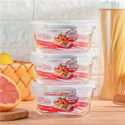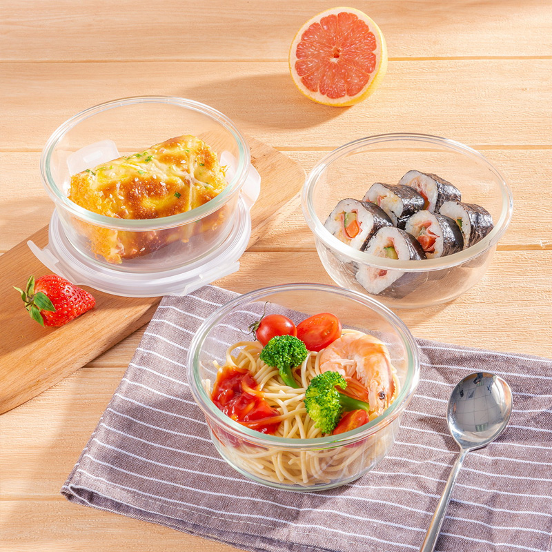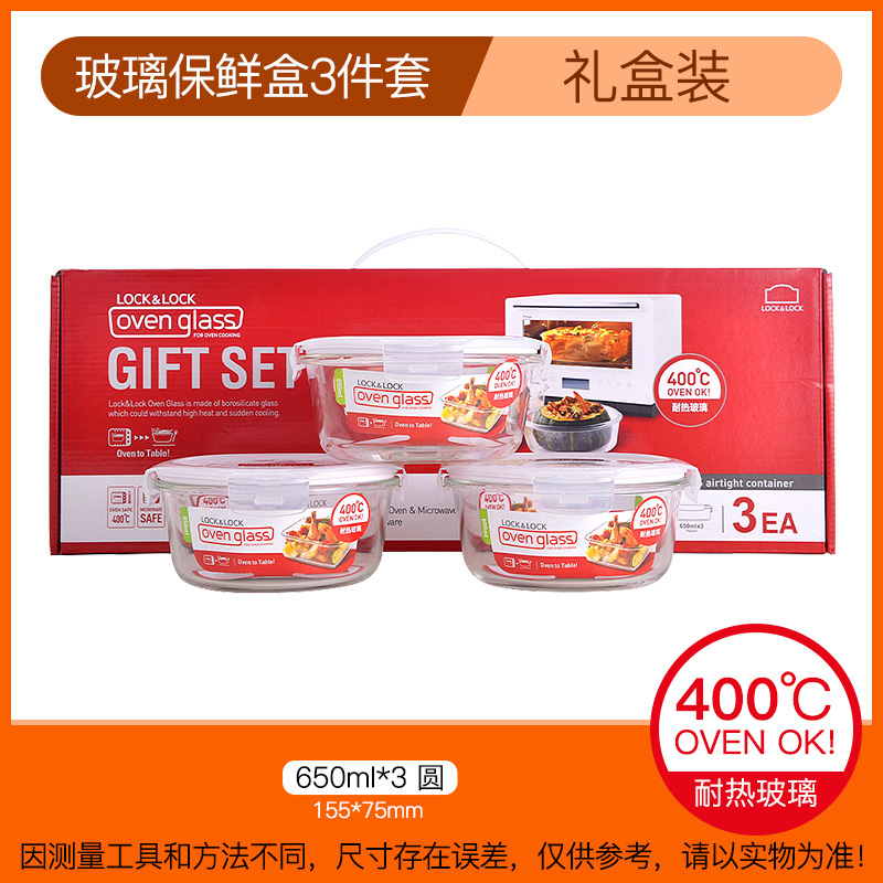 3件套 耐热玻璃碗密封收纳盒微波炉加热专用冰箱保鲜盒饭盒【玻璃/透明】 |