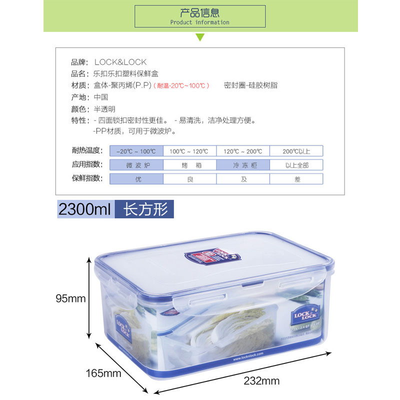 保鲜盒塑料大容量冰箱密封收纳盒 2300ML*2【塑料/半透明】 |