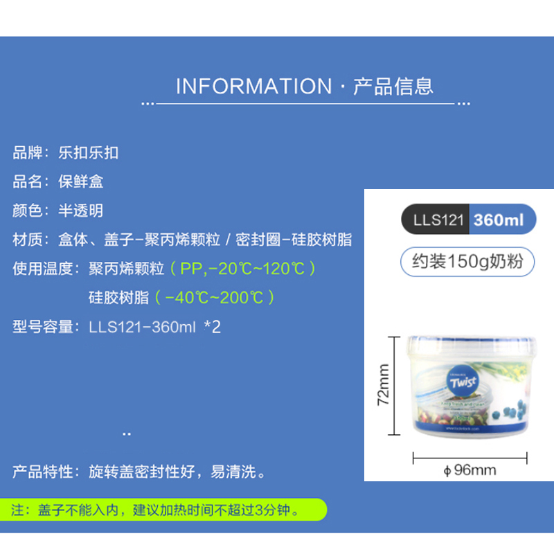 圆形塑料保鲜盒两只装 360ML*2【塑料/透明】 |