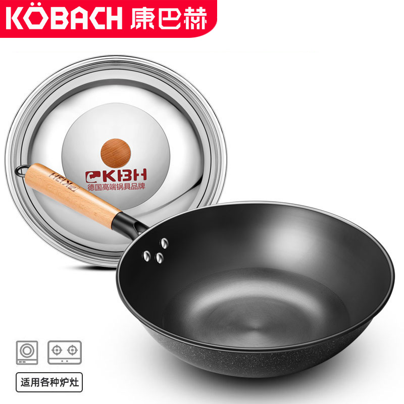 康巴赫炒锅32cm无涂层精制铸铁炒菜锅【铸铁/黑色】 |