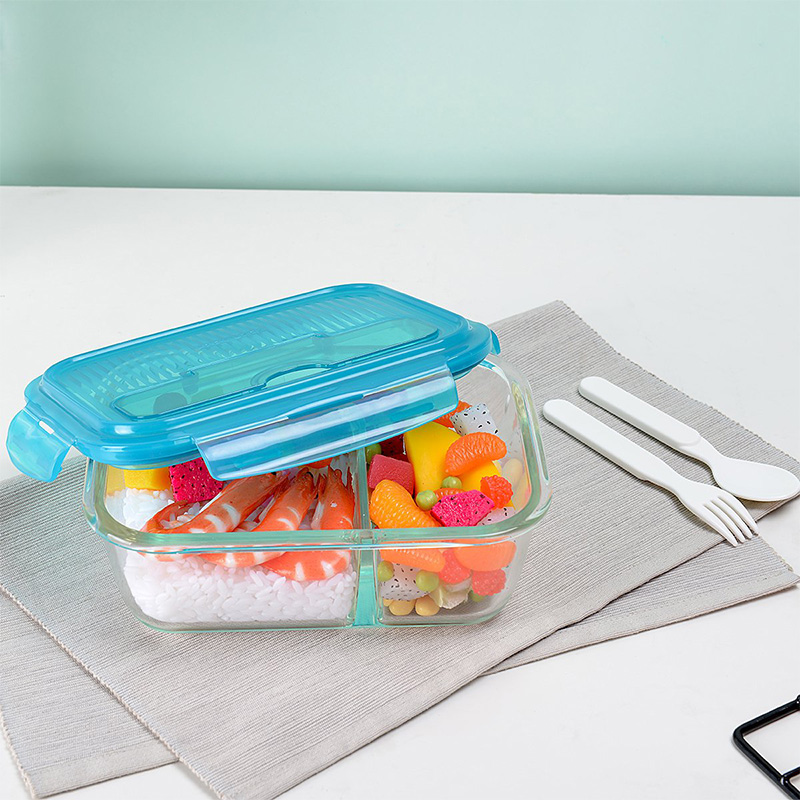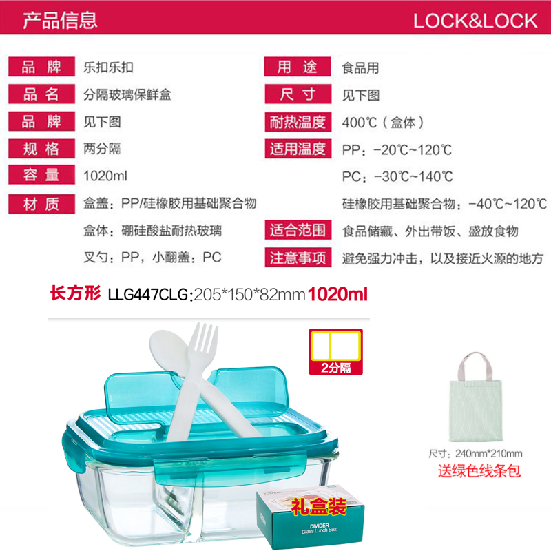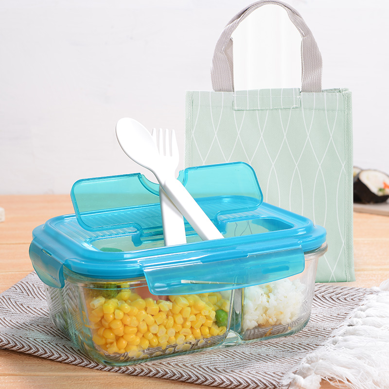 保鲜盒玻璃饭盒分隔便当盒微波炉专用碗加热上班族长方形 送时尚便当包【玻璃/透明】 |