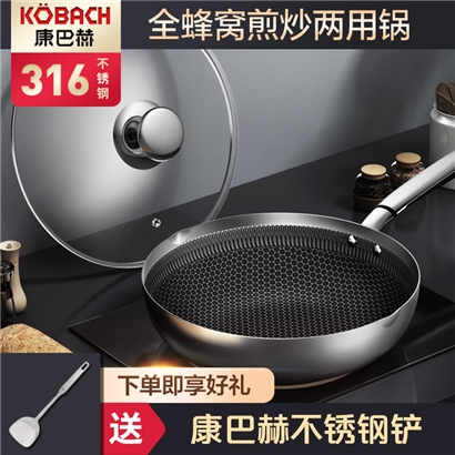 【购买加送清洁膏1瓶】康巴赫316不锈钢煎炒两用锅30cm(送不锈钢锅铲)【316不锈钢/图片色】 |