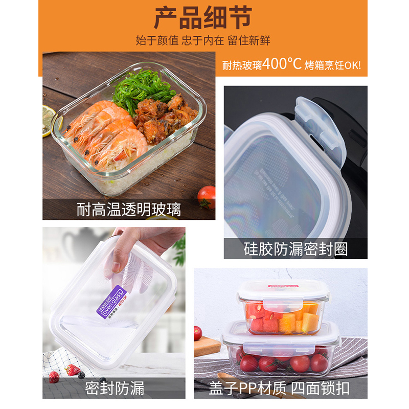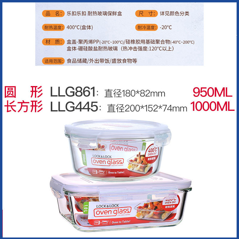 耐热玻璃保鲜盒微波炉适用饭盒1000ML+950ML【玻璃/透明】 |