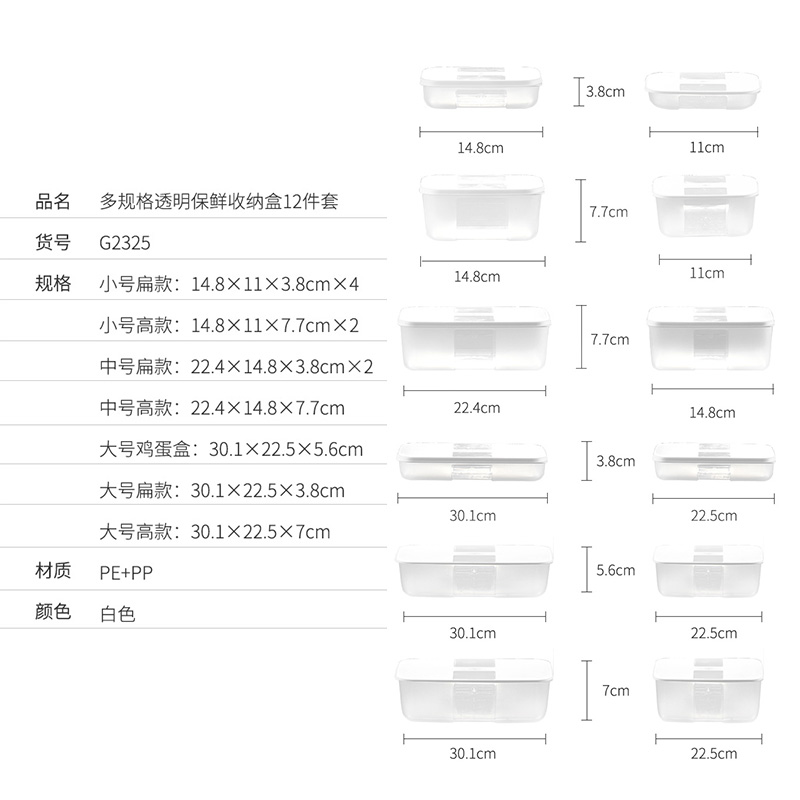 多规格透明保鲜收纳盒12件套【PP PE/图片色】 |