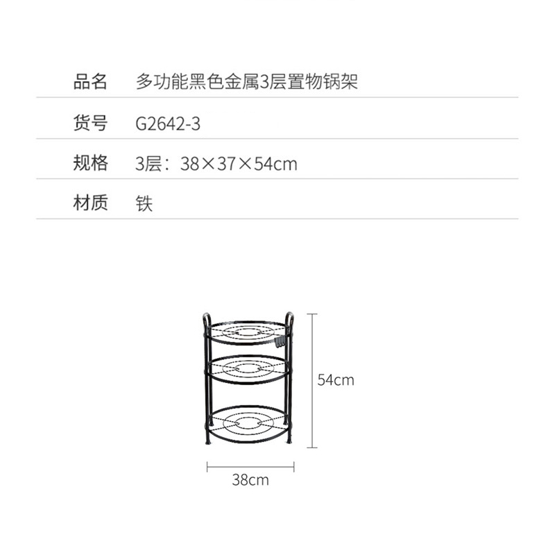 多功能黑色金属3层置物锅架【铁/图片色】 |