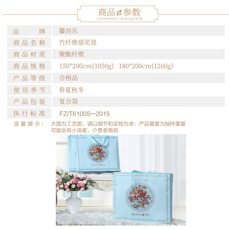 竹纤维提花毯(毯子1件)【聚酯纤维/蓝】 |