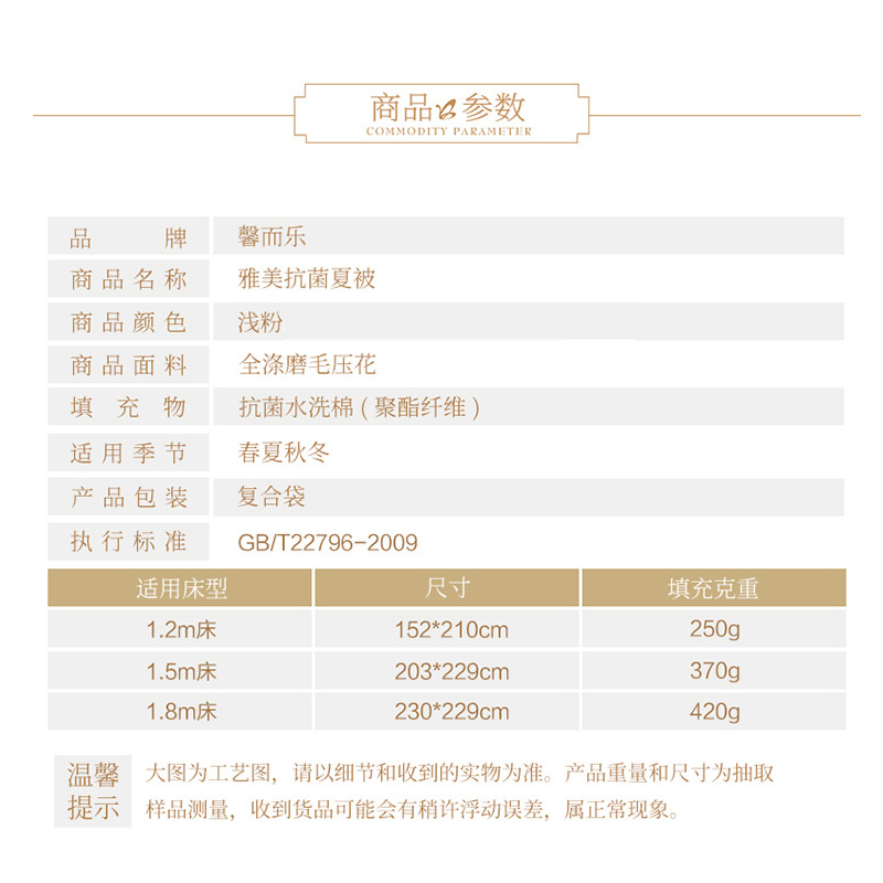 雅美抗菌夏被(被芯1件)(适合1.8米床)【面料:聚酯纤维;填充:聚酯纤维/粉色】 |