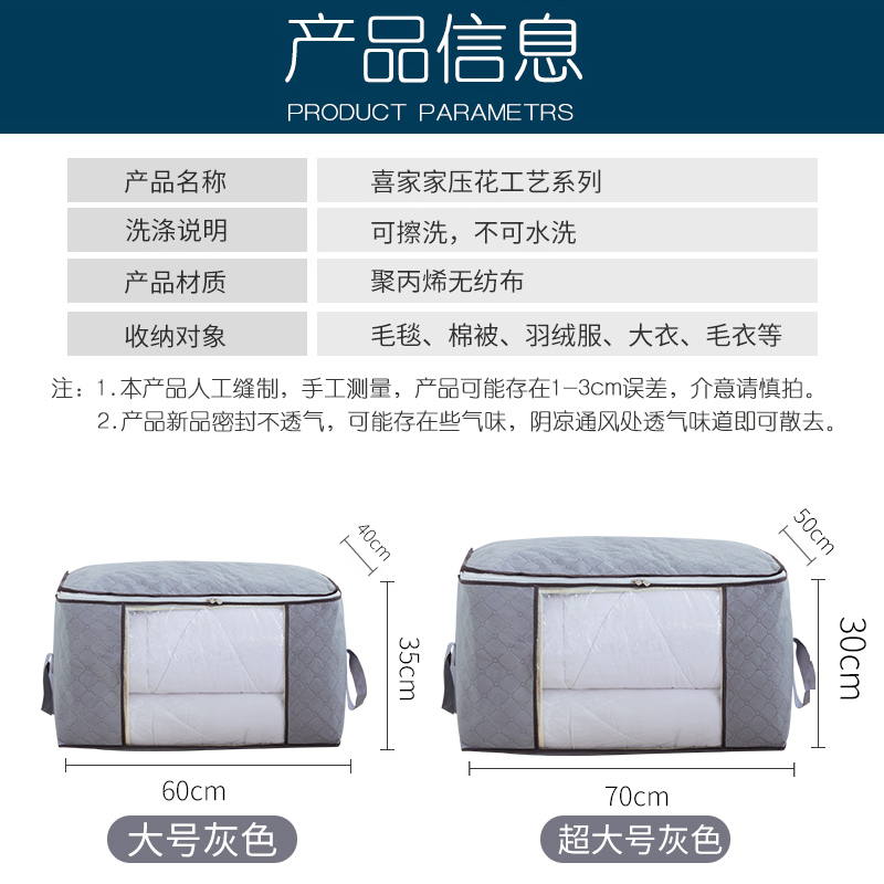 4个衣物棉被收纳袋【无纺布/灰色】 |