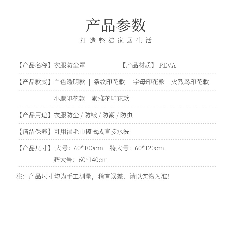 衣服防尘罩5个【PEVA/白色】 |