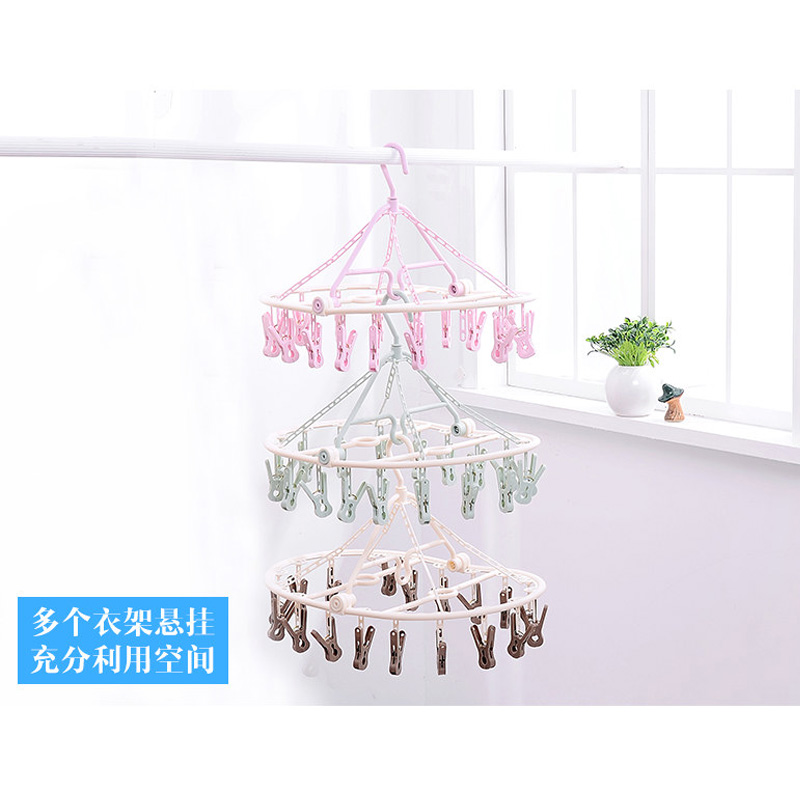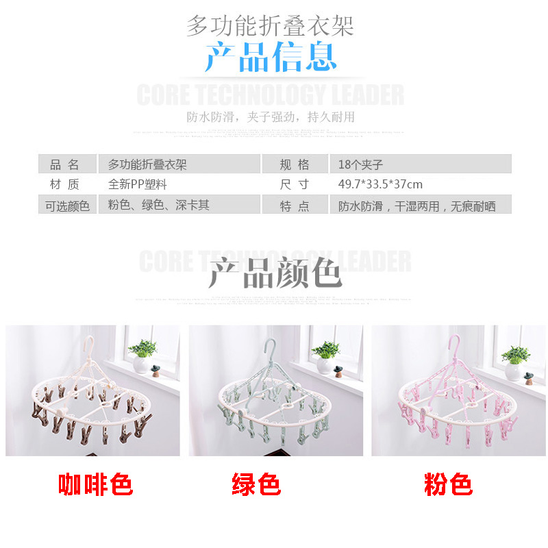 【2个】18夹折叠衣架【PP/粉色】 |