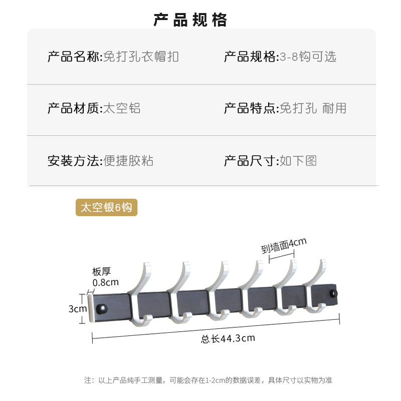 免打孔衣帽挂钩2个【太空铝/图片色】 |