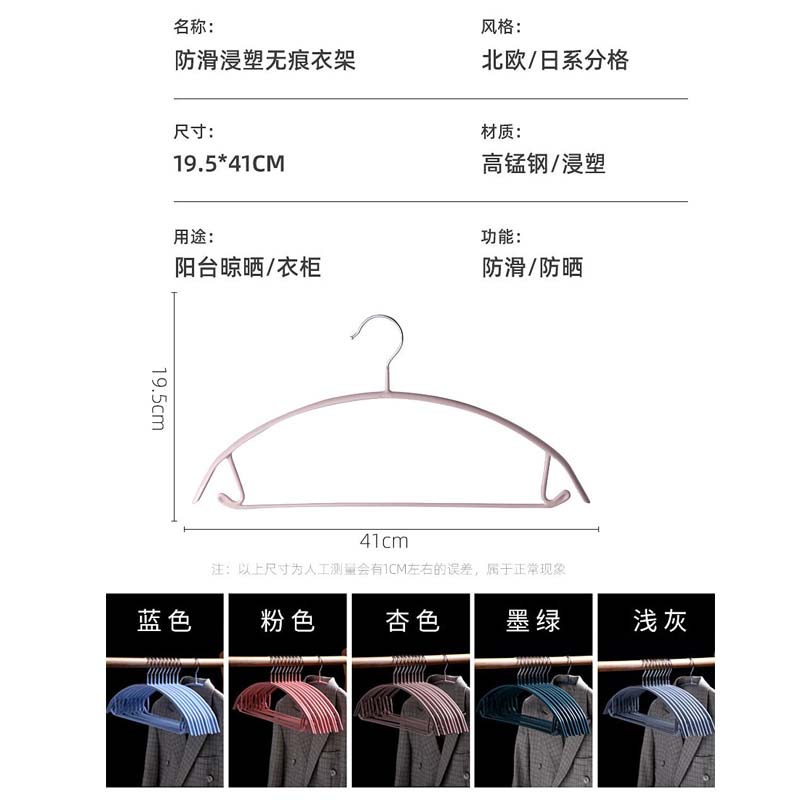 圆弧防滑衣架30个【高锰钢/浸塑/浅灰】 |