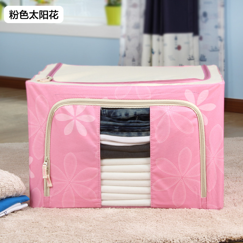 带钢架牛津布收纳箱2个【牛津布+三钢架/粉色太阳花】 |