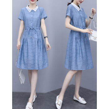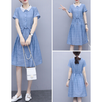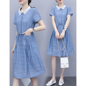 婪澈连衣裙女女装夏季新款韩版时尚休闲洋气修身裙子时尚显瘦裙子女 蓝色 请下正确尺码 |