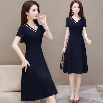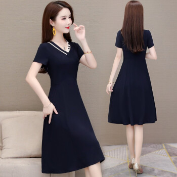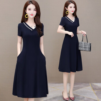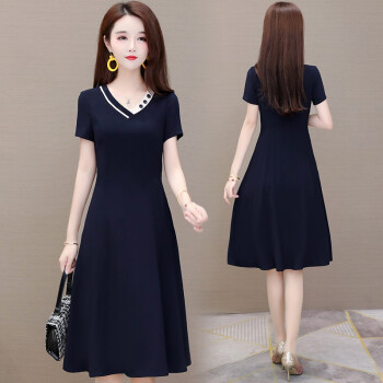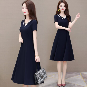 格素凡 连衣裙女夏装新款韩版V领雪纺气质女神遮肚显瘦中长款裙子收腰减龄蕾丝纯色碎花长裙女装潮 蓝色(KED91235 ) 女-L 建议体重105-115斤 |
