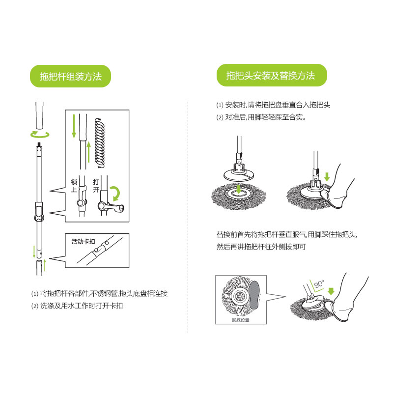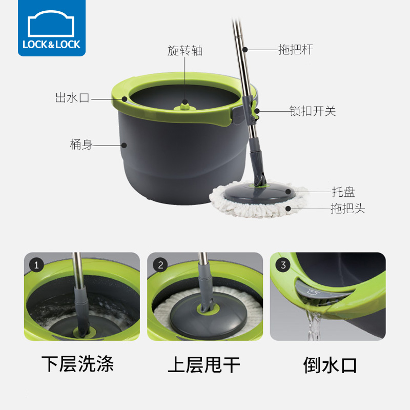 单桶旋转拖把自动甩水桶【PP+PE、ABS/不锈钢、超细纤维/绿色】 |