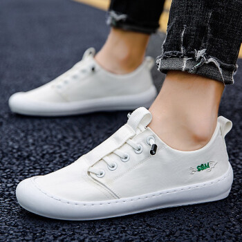男鞋夏季新品鞋子男潮鞋户外休闲鞋小白鞋透气帆布鞋冰丝板鞋老爹鞋一脚蹬休闲懒人老北京布鞋 MX-H01白色 41 |
