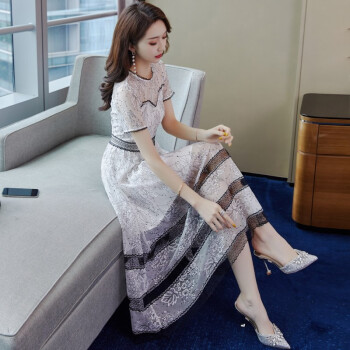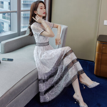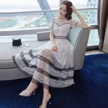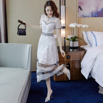 巷前 连衣裙新款夏季女装名媛仙女超仙蕾丝网纱收腰显瘦显高气质连衣裙子中长款 白色 M |