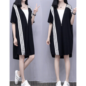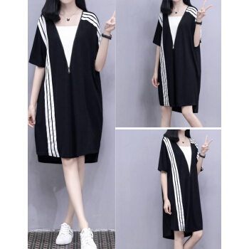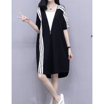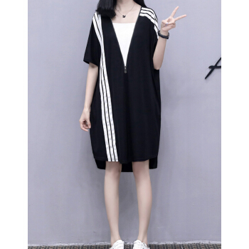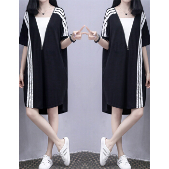 婪澈连衣裙女夏装新款大码女装拉链宽松显瘦运动休闲卫衣裙T恤裙 图片色 请拍正确尺码 |