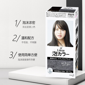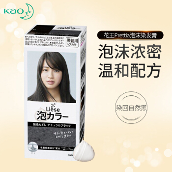 日本进口 花王(KAO)Prettia泡沫染发剂 黑色(1液34ml 2液66ml 护发素8g )植物泡泡不伤发 |