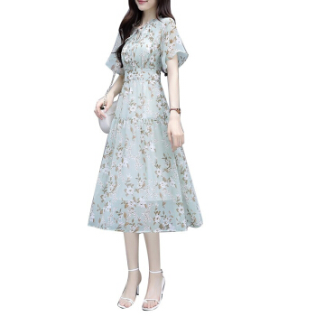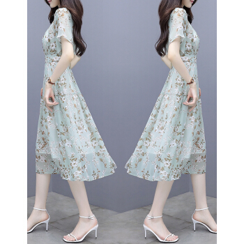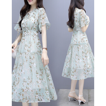 茵艾曼连衣裙女大码装夏季新款女装时尚减龄气质显瘦遮肚子胖mm长裙子 A1352浅绿 L《108-118斤》 |