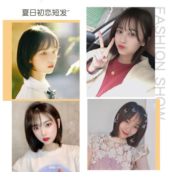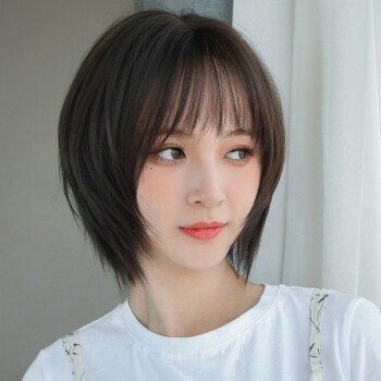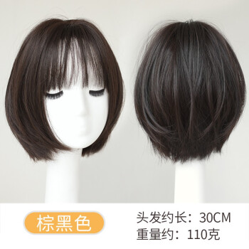 纵美 假发女短发 刘海假发套时尚气质自然逼真波波头套 棕黑色+护理五件套 |