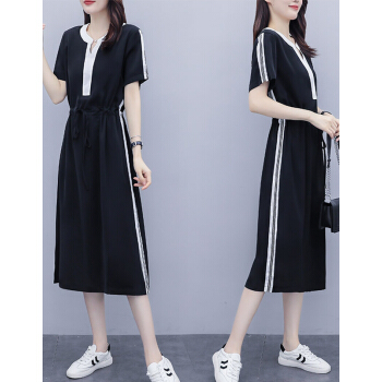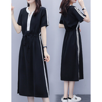 婪澈连衣裙女女装夏季新款遮肚子显瘦洋气大码女装胖妹妹时尚收腰中长款连衣裙女 图片色 请下正确尺码 |