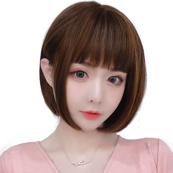 蔓茵假发女短发bobo头真发丝递针中分仿真空气刘海波波头自然逼真圆脸假发套网红学生黑 深棕色【仿真发丝】 |