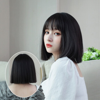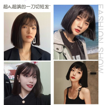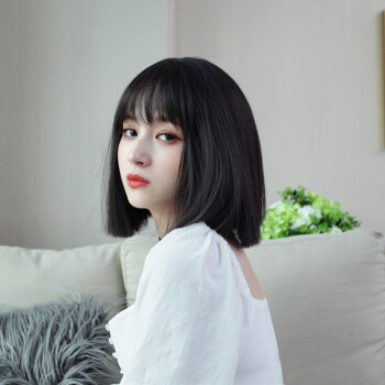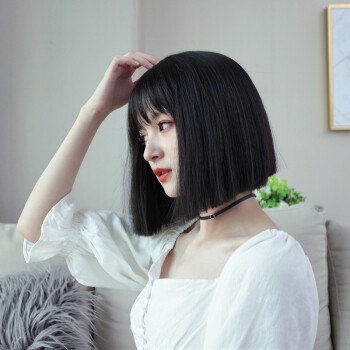 纵美 假发女短发 刘海假发套时尚气质自然逼真波波头套 一刀齐自然黑+护理五件套 |