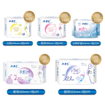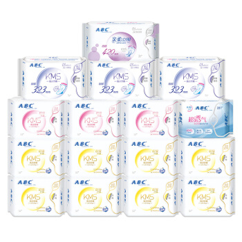 ABC KMS纤薄棉柔日夜组合16包122片(日用64片+夜用24片+加长9片+超长3片+护垫22片)卫生巾套装 |