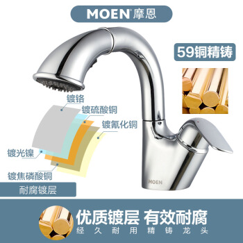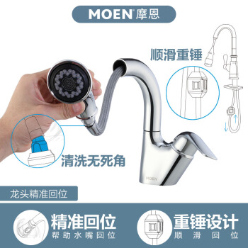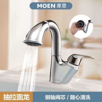 摩恩(MOEN)家用浴室面盆龙头 抽拉式冷热水龙头 洗脸盆浴室可旋转冷热龙头 精铜面龙91035EC |