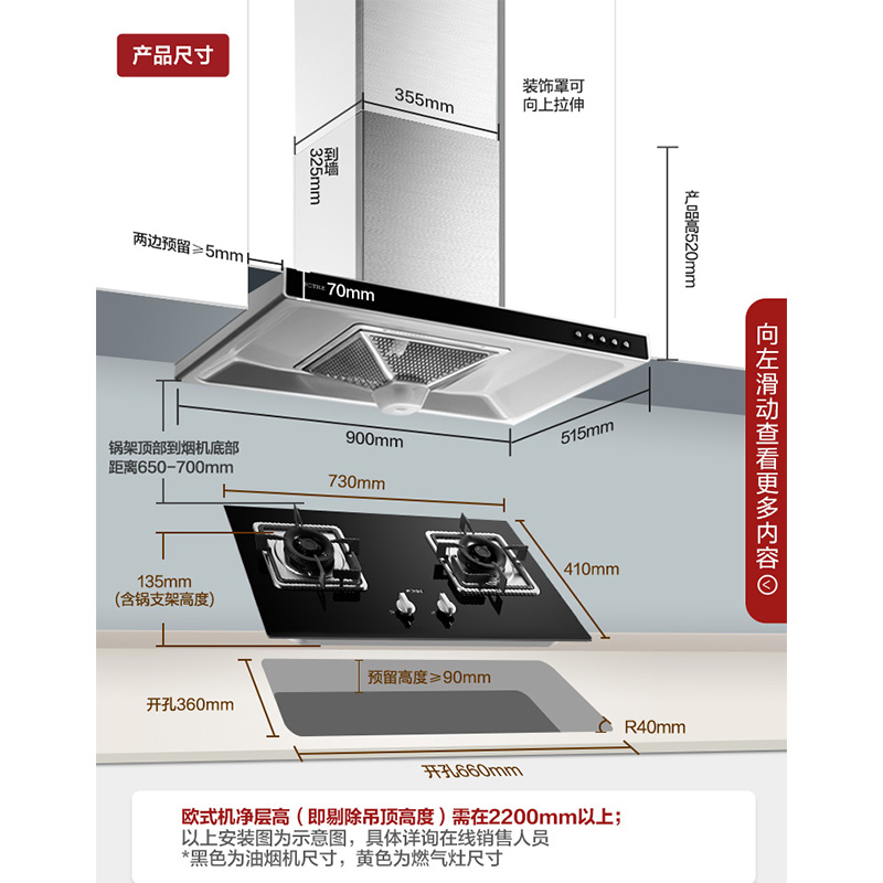 EH37+FD23BE 三重净烟 18m3/min大风量 4.1KW*大火力 烟灶套装【不锈钢+钢化玻璃/黑色】 |
